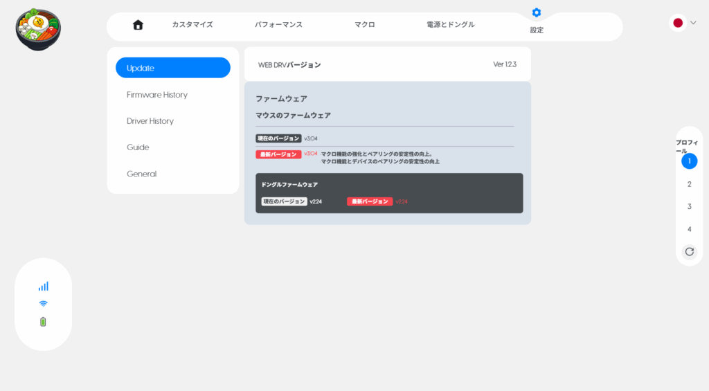 レシーバーと本体のファームウェアをアップデートしておきましょう。