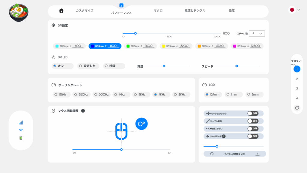 高DPIで発生しやすいセンサーのジッターやリップル(不規則な動作)を補正する機能。