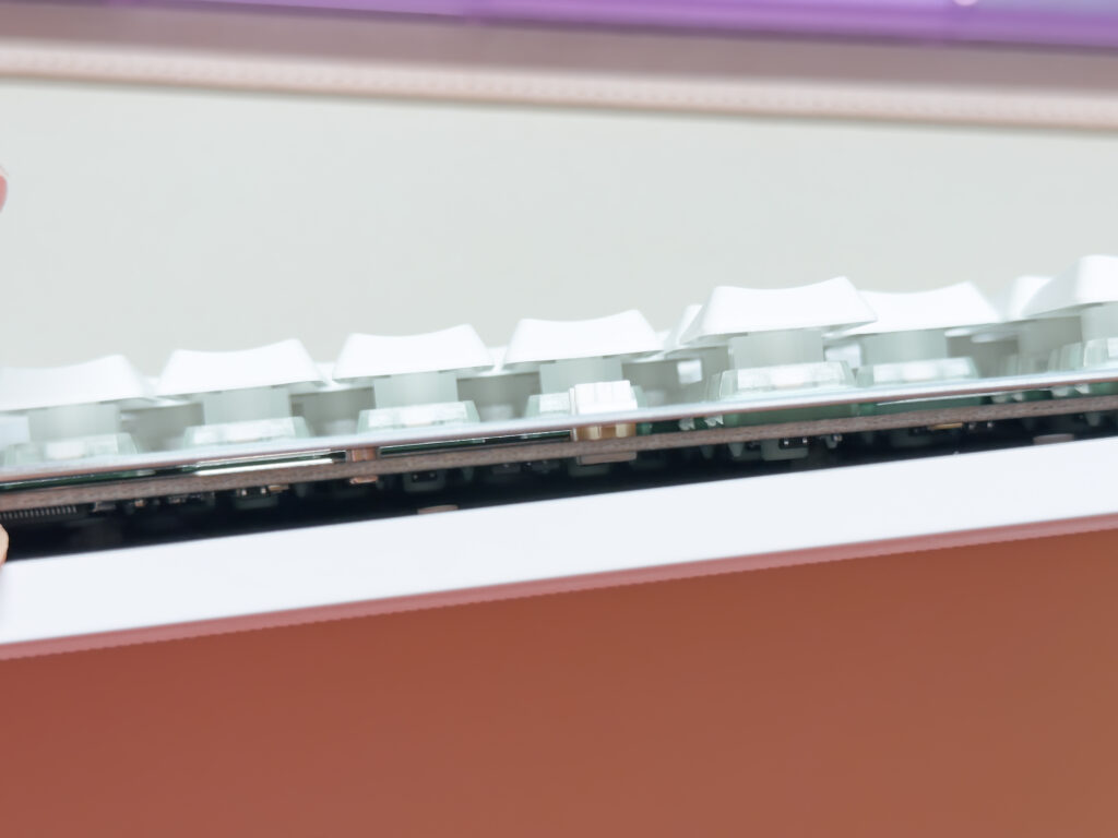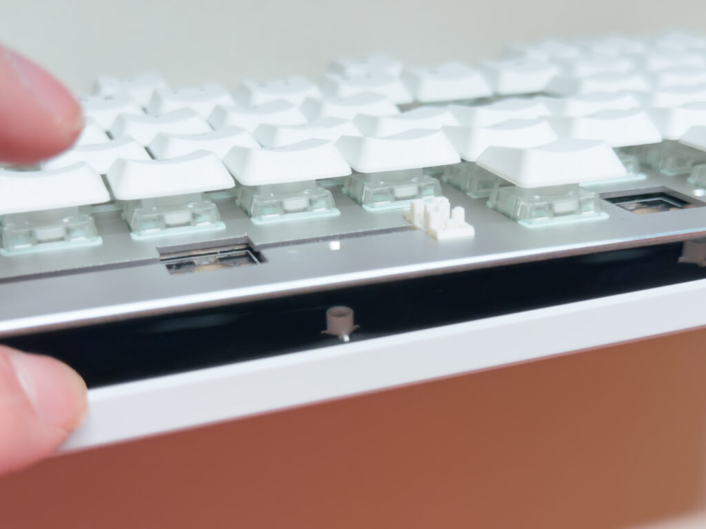 ケース内の共鳴はあまり感じませんが、場所によって打鍵音の空洞感に差を感じ、