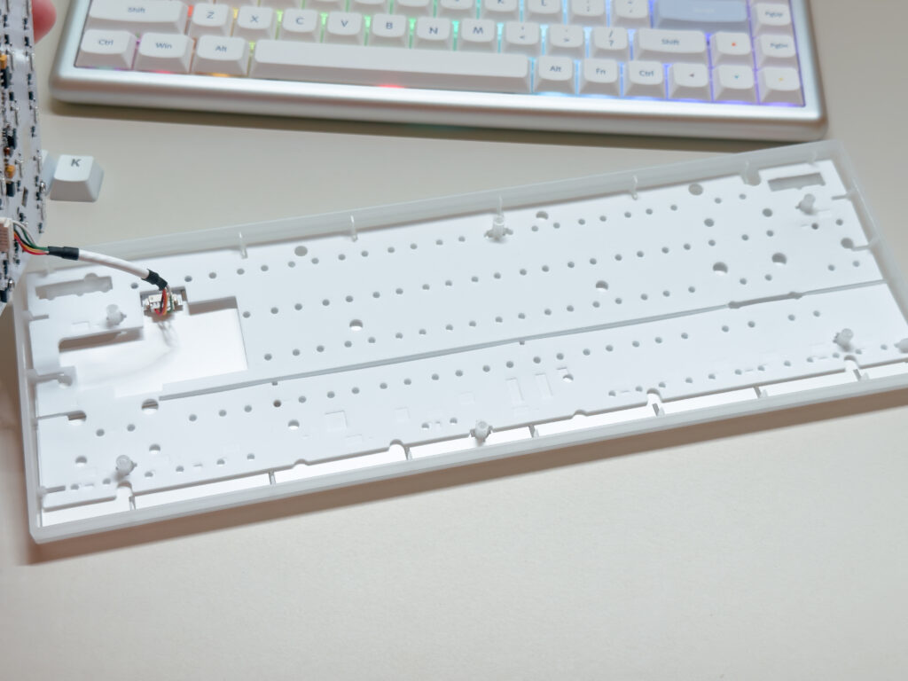 トレイマウント採用で、ボトムケースのスタンドオフに基盤がネジ止めされる形です。