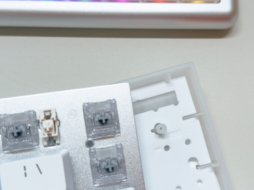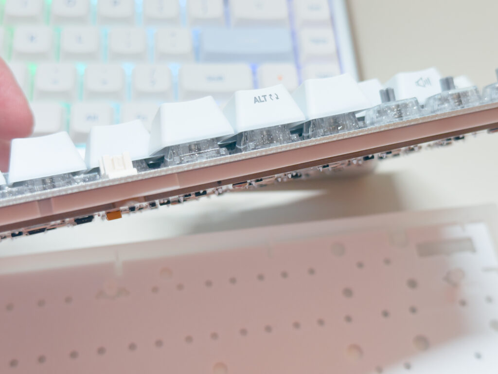 基盤と干渉してしまい打鍵感と打鍵音が明らかに硬くフィーリングが悪くなってしまっています。