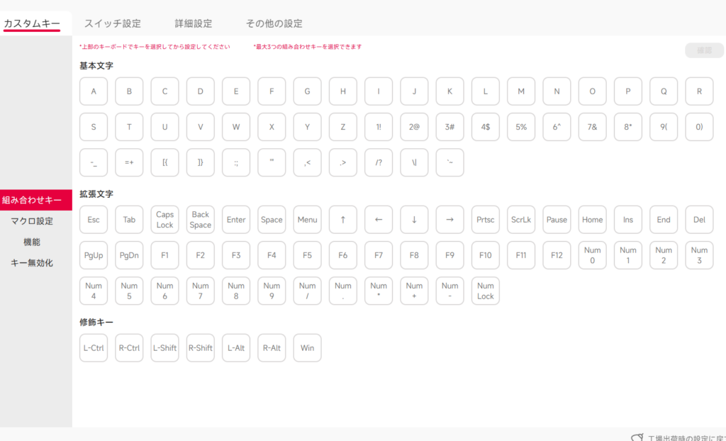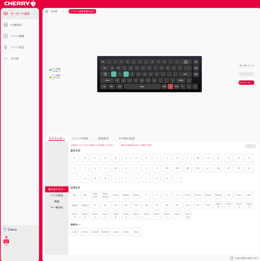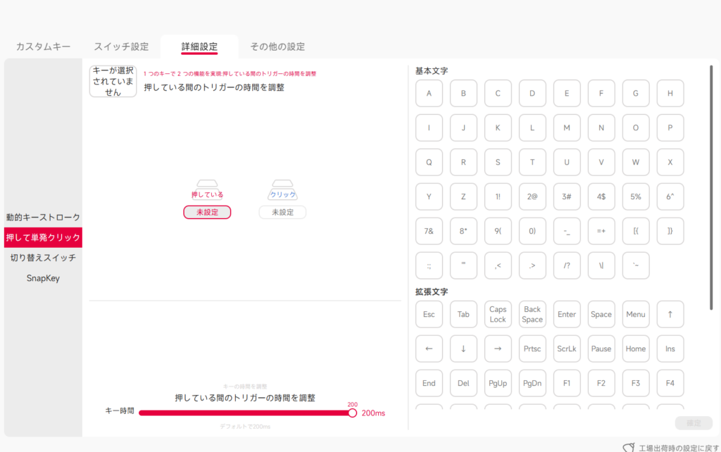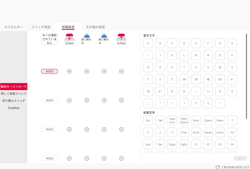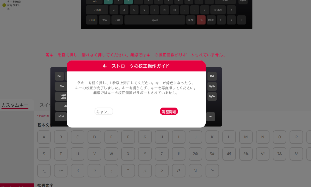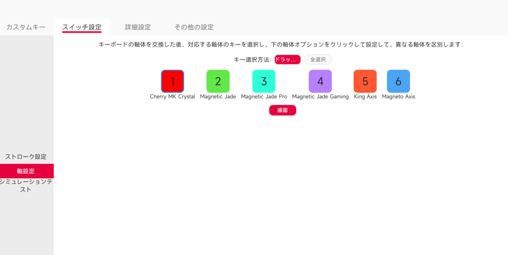 キーボード設定から使用するスイッチを選択し、必ずキーキャリブレーションを行いましょう。