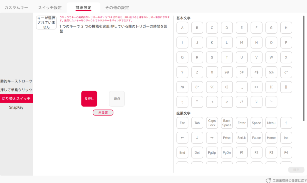 一度起動すると、完全に離すまではラピッドトリガーがオンとなります。
