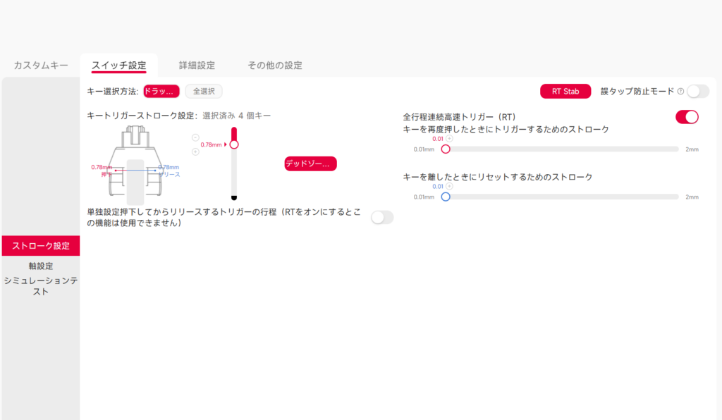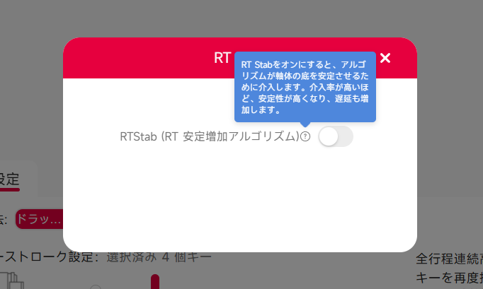 RT Stabや誤タップ防止モードは基本的に遅延が増加する代わりに、安定性が向上すると考えていただいて問題ありません。お好みで使用しましょう。