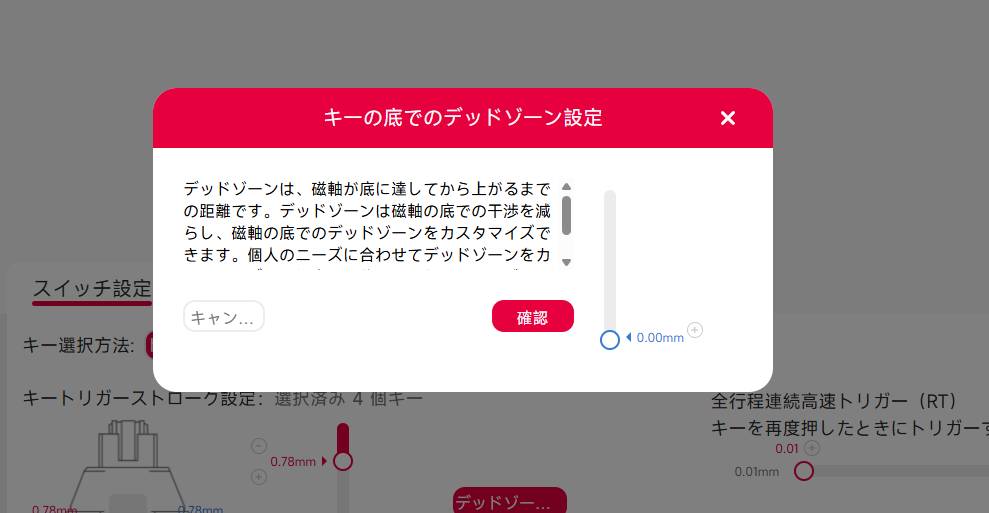 0.01mmRT設定、デッドゾーン0で動作は安定してプレイ可能でした。