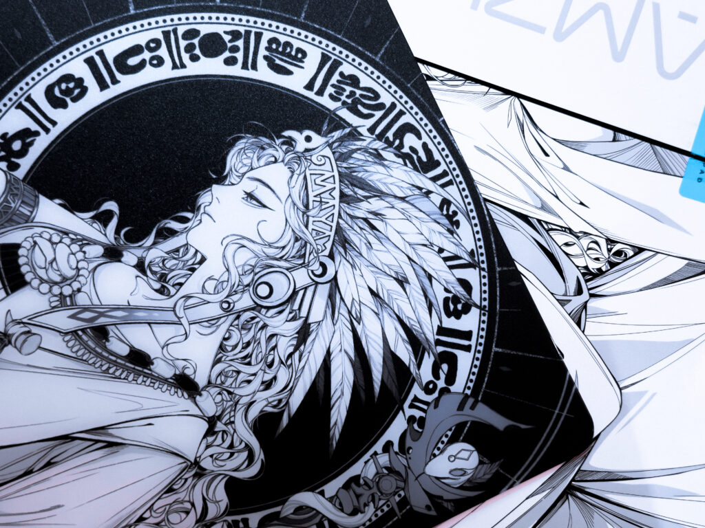 おそらくチチェン・イッツァのカスティーヨをモチーフとしたマヤ文明のピラミッドに、太陽神なのかククルカンなのか分かりませんが、マヤ文明の女神のようなイラストとなっています。