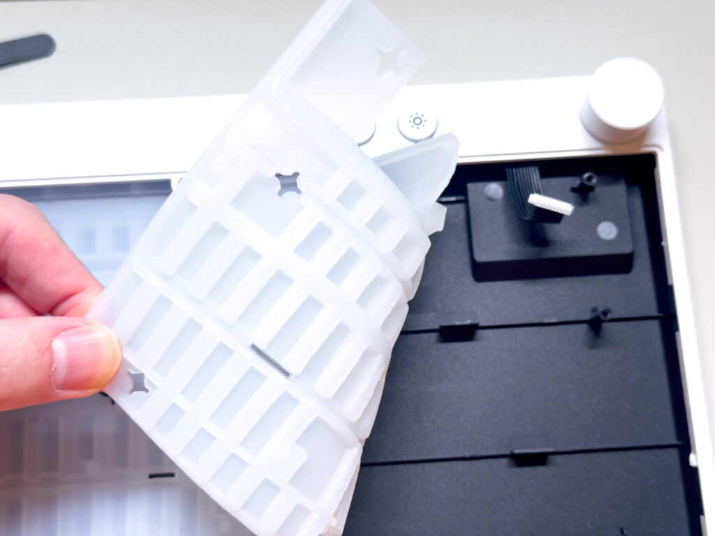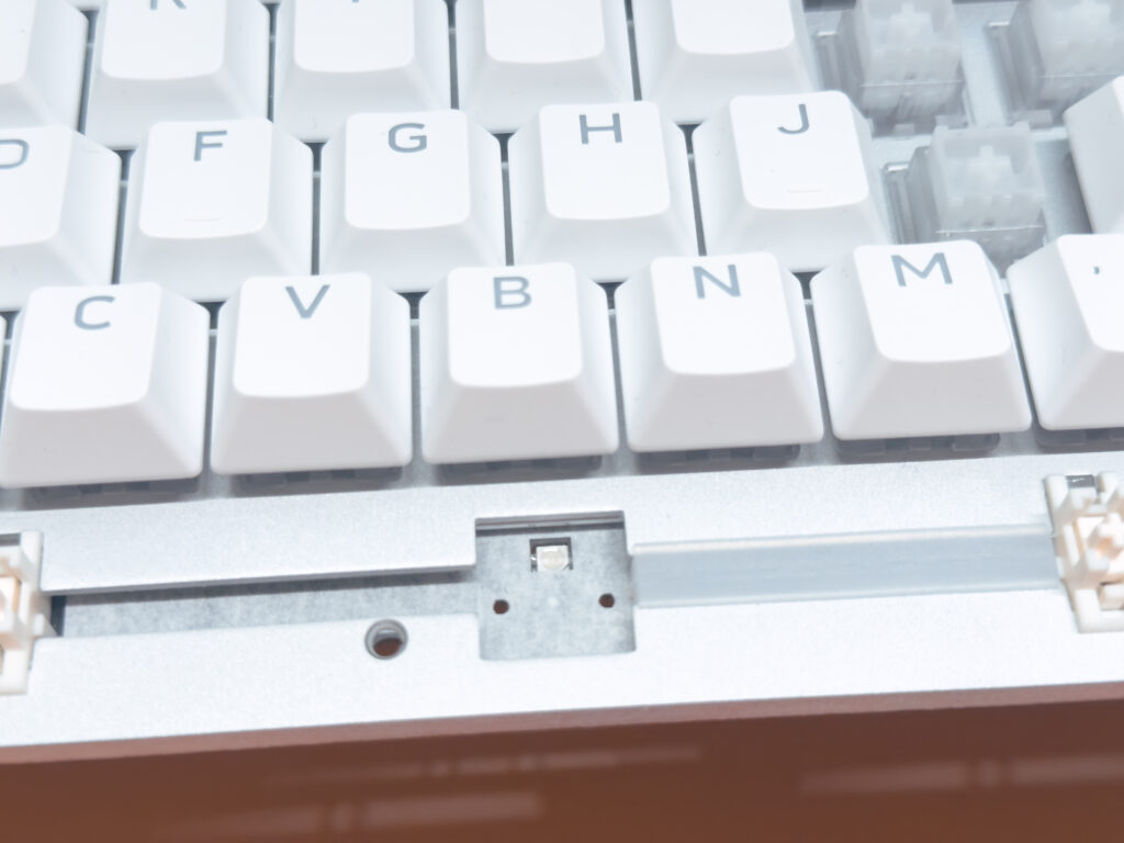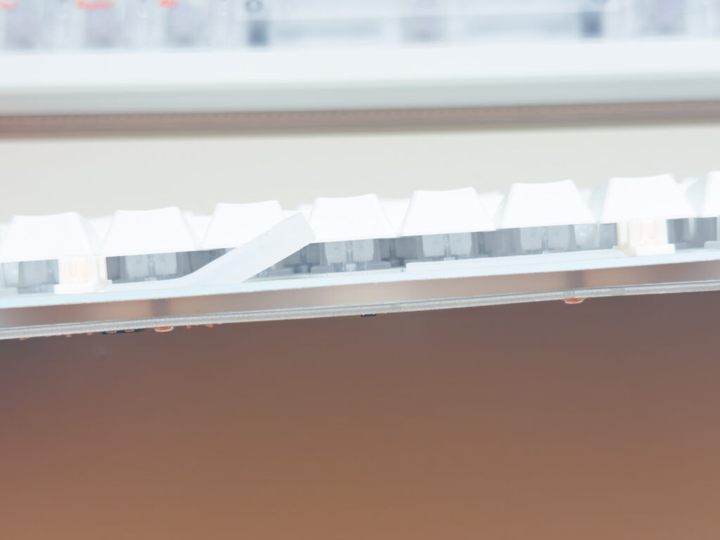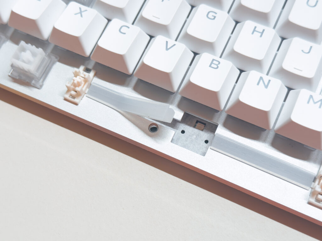 PCBとプレートの間にはシリコンサンドイッチパッドで吸音と打鍵感の調整をしつつ、