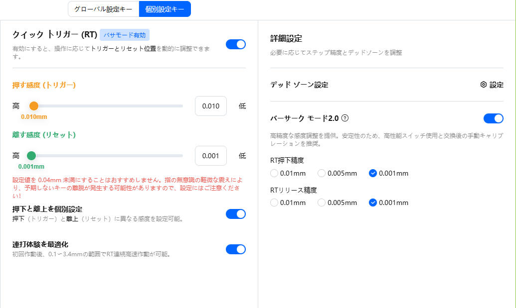 ラピッドトリガーの設定はこちらになります。