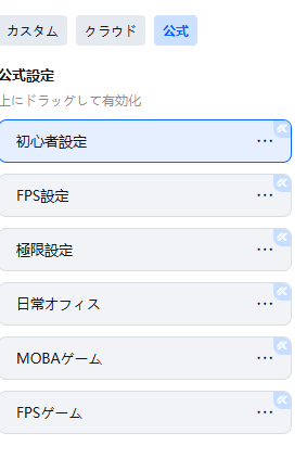 その他にも公式のプロファイルが用意されているので、こちらからカスタムするのもありです。