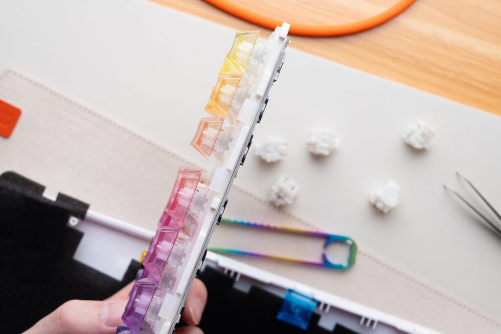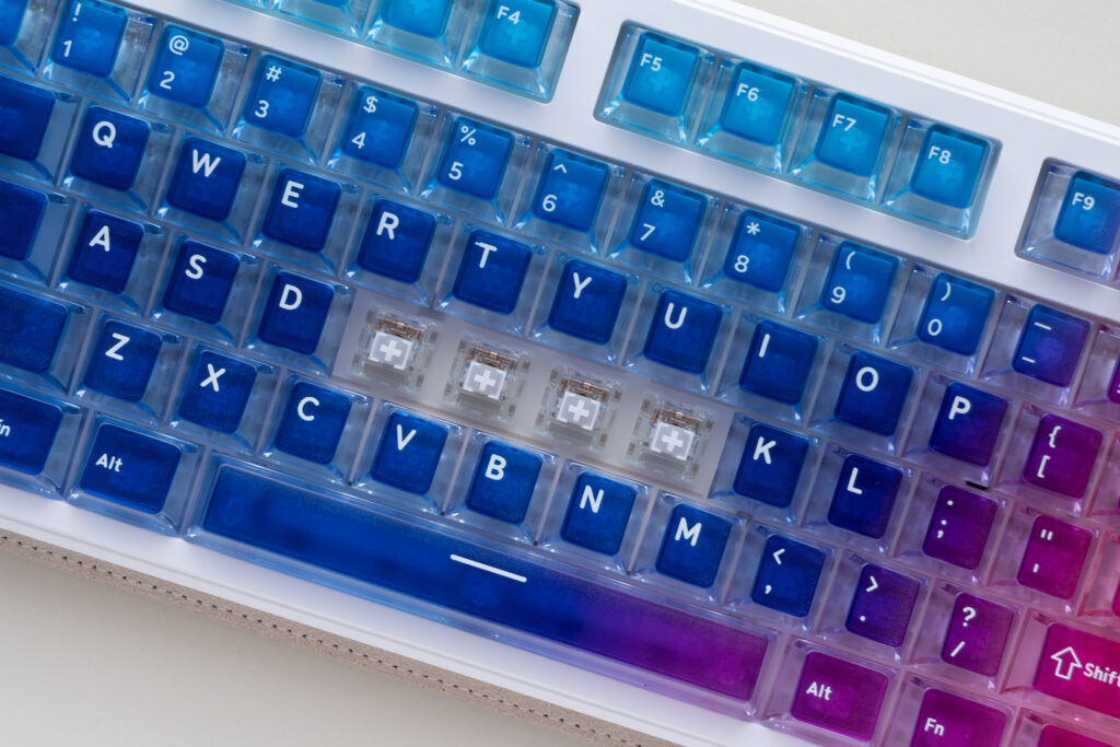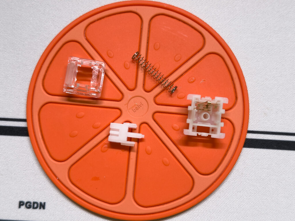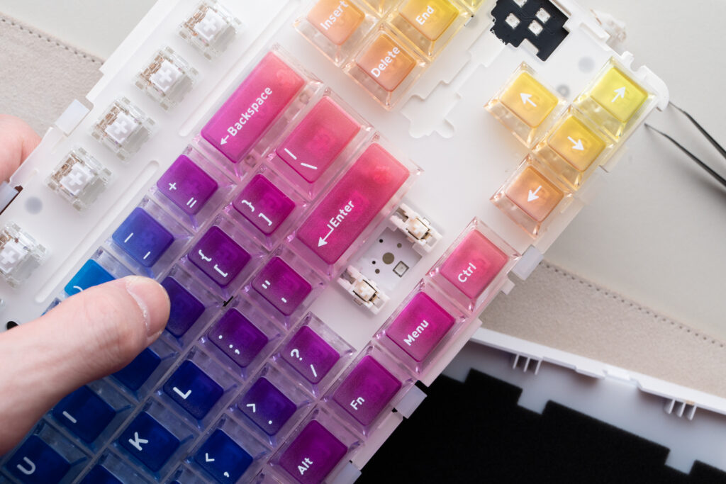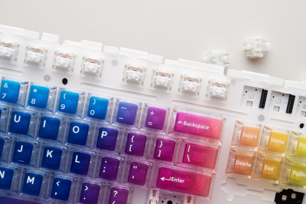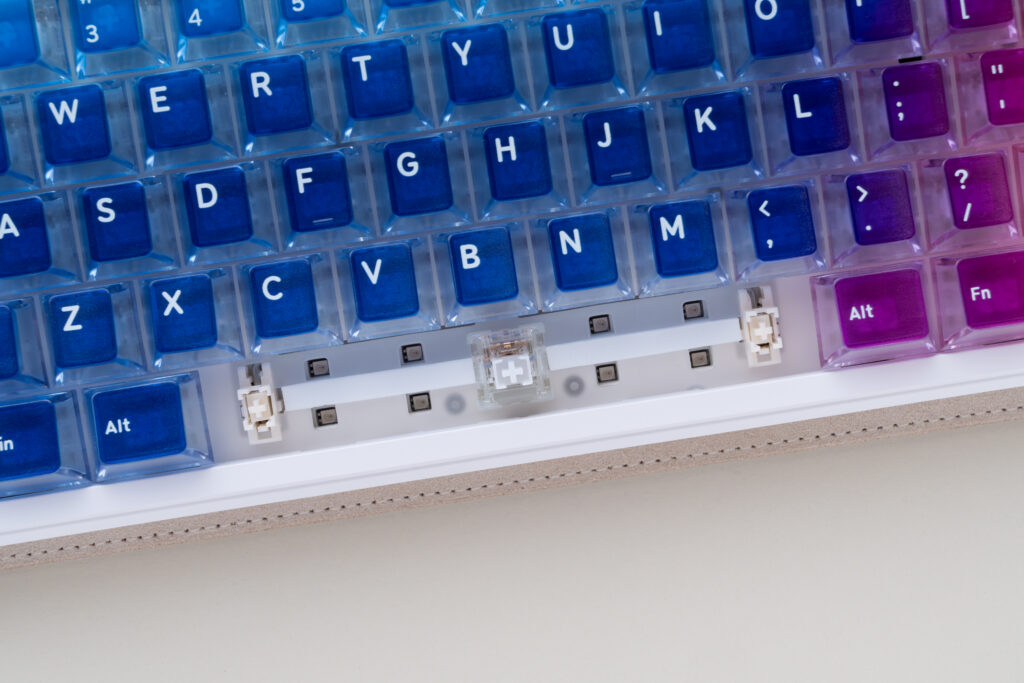 スイッチも透明で、キーキャップもPCなのでライティングがキレイに透過しますね!
