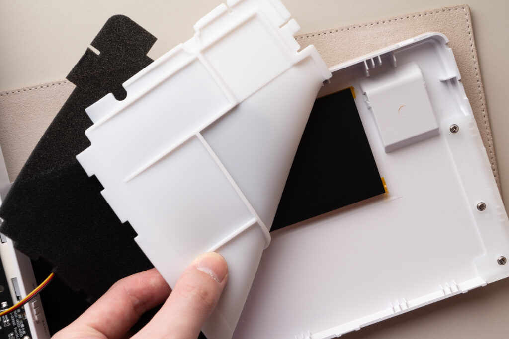 ケースのフォームはバッテリーを隠すようにシリコンフォームとスポンジ系のフォームの2層。
