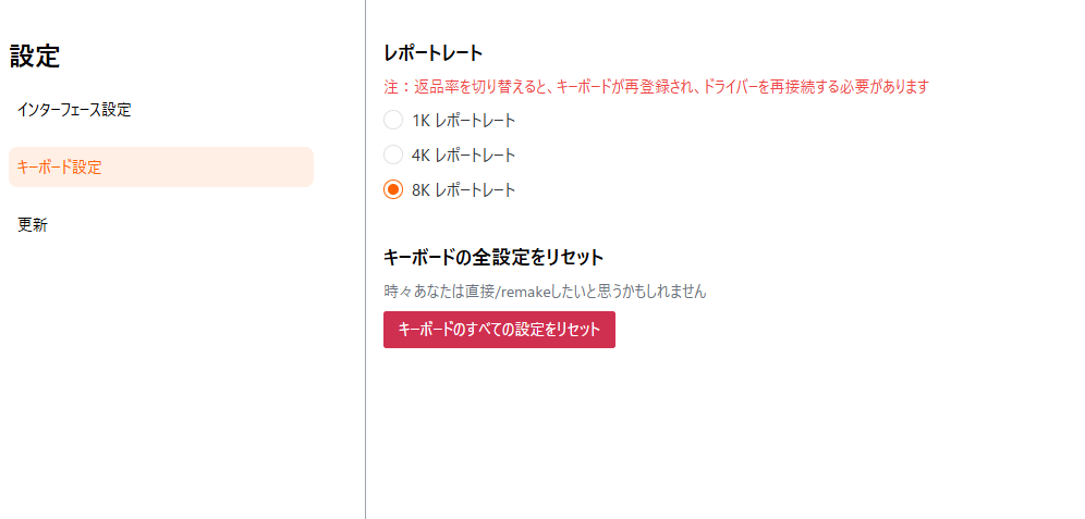 ポーリングレートの変更や、ファームウェアアップデートはここ。