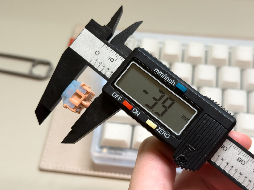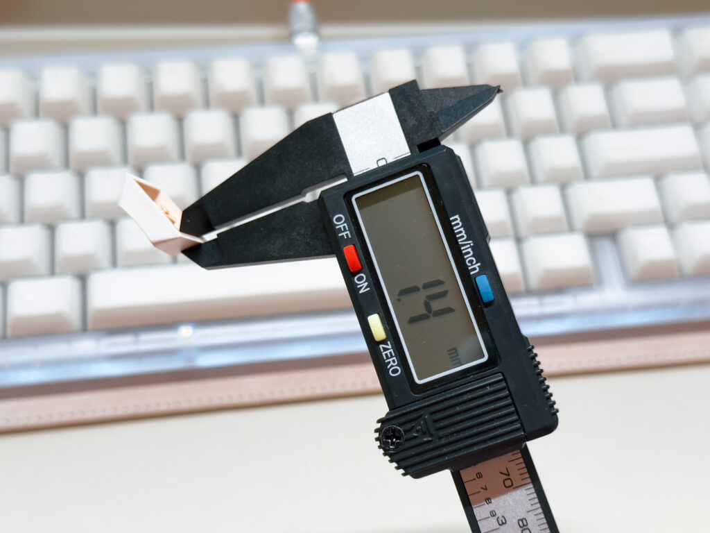チルト角度がある程度ついているので、そこまで前面の高さは気になりませんが、個人的にはあと2mmぐらい前面は低いほうがタイプフィーリングはいいと思います。