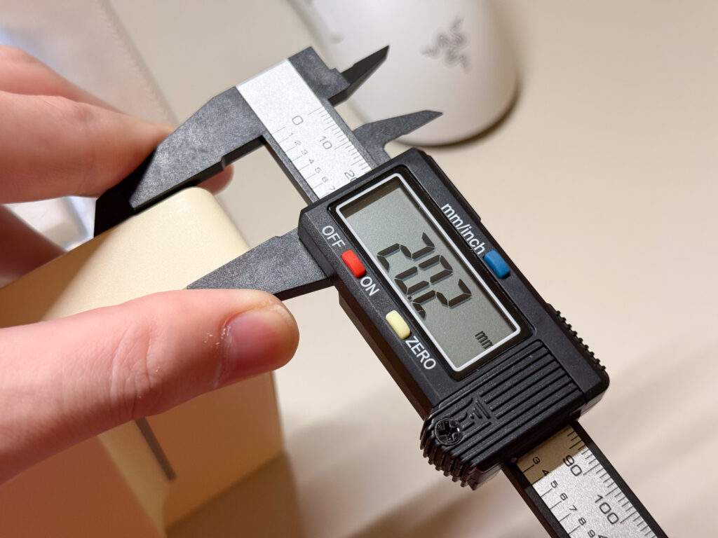 厚みは標準程度。Double Shot PBTなので印字ハゲやテカリはあまり心配なし。