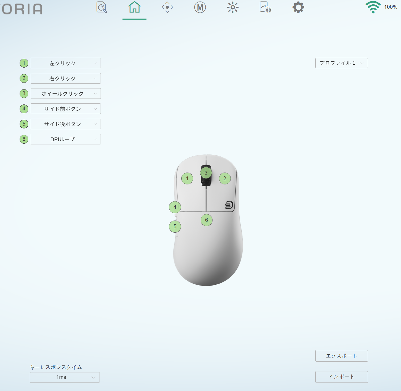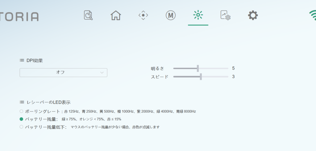 レシーバーのLED表示変更や、DPI識別のライティングを変更することが可能です。