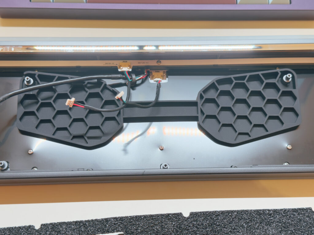 フロストPCBキーキャップのカラーリングと、目を引く他にない形状のライティングバー、それに加えこの背面のかっこよさ。