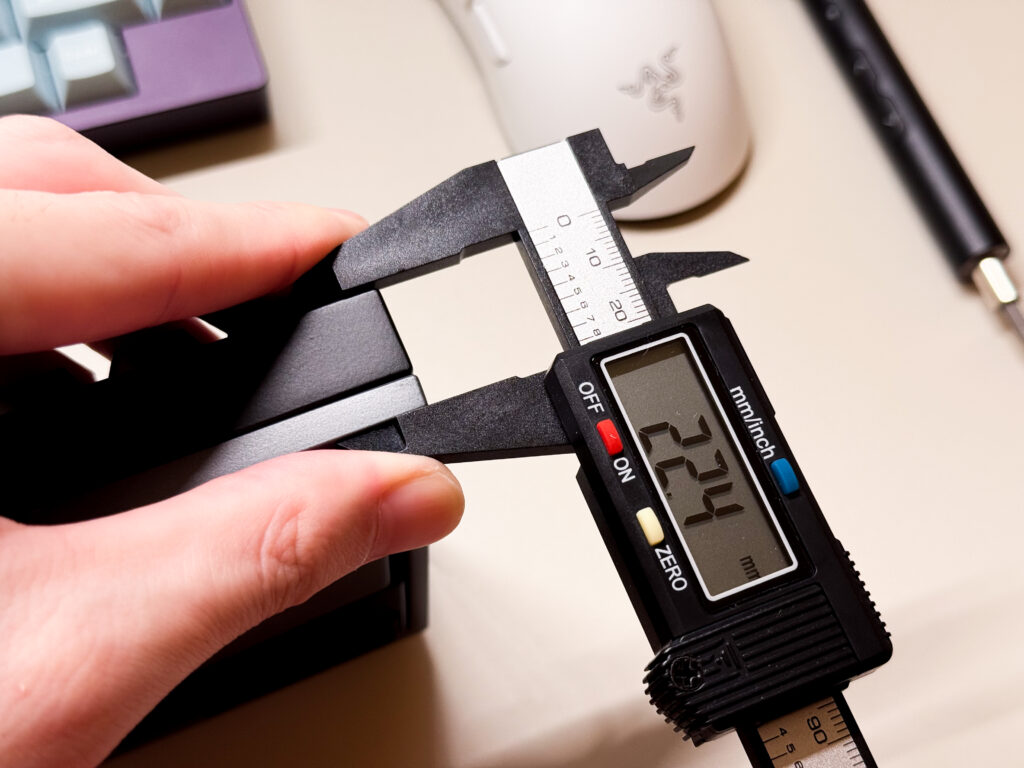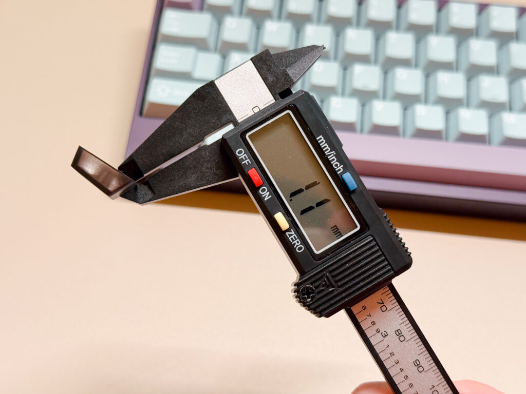FrostedのPCキーキャップを採用。厚さは実測値で1.1mmで薄め。