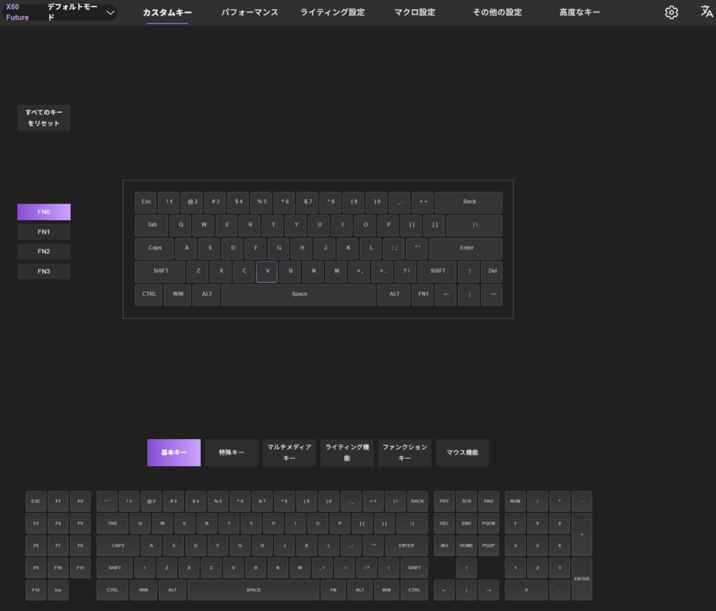 レイヤーも4つあれば60%キーボードでも十二分な操作性を確保できます。