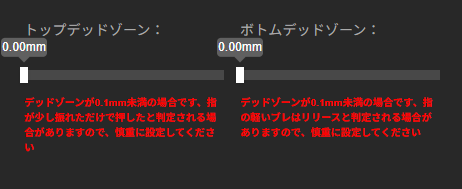 デッドゾーンとは、「誤動作を防ぐために、AP/RTの反応しない区間」と認識してください。0mmにすることも可能です。