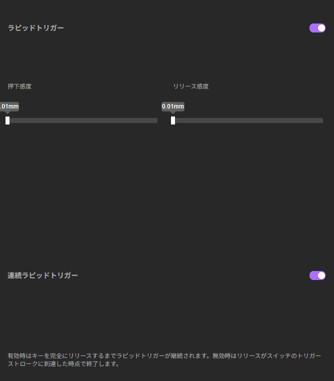 連続ラピッドトリガーは、一度トリガーが起動すると完全にキーを離すまで