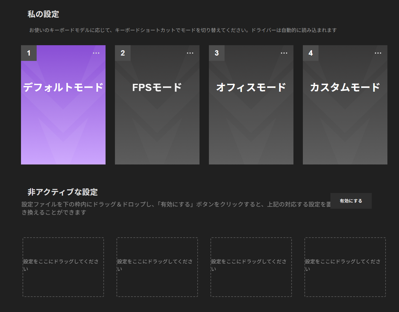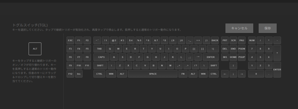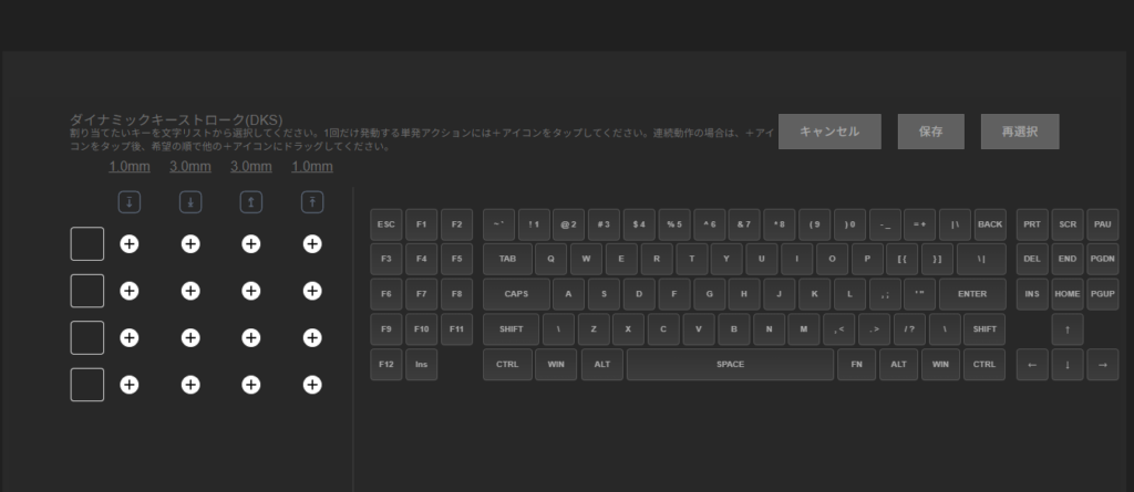 1つのキーでキーストロークに応じて最大4つの機能を割り当てることが可能です。