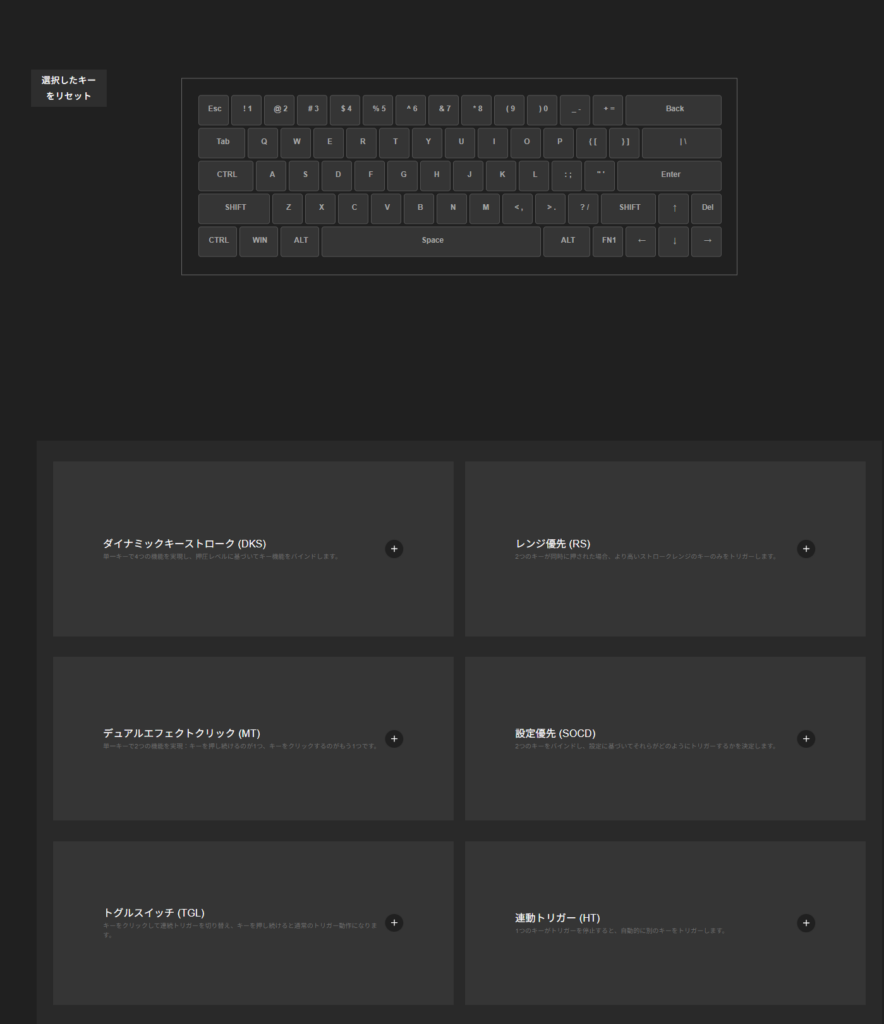 こちらではMod-TapやSOCDなど拡張機能を設定可能です。