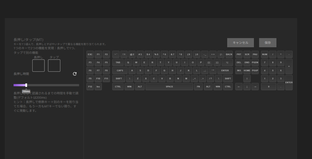 長押し時間がデフォルトの200だとMod-Tapがうまく機能しない場合もあるので、
